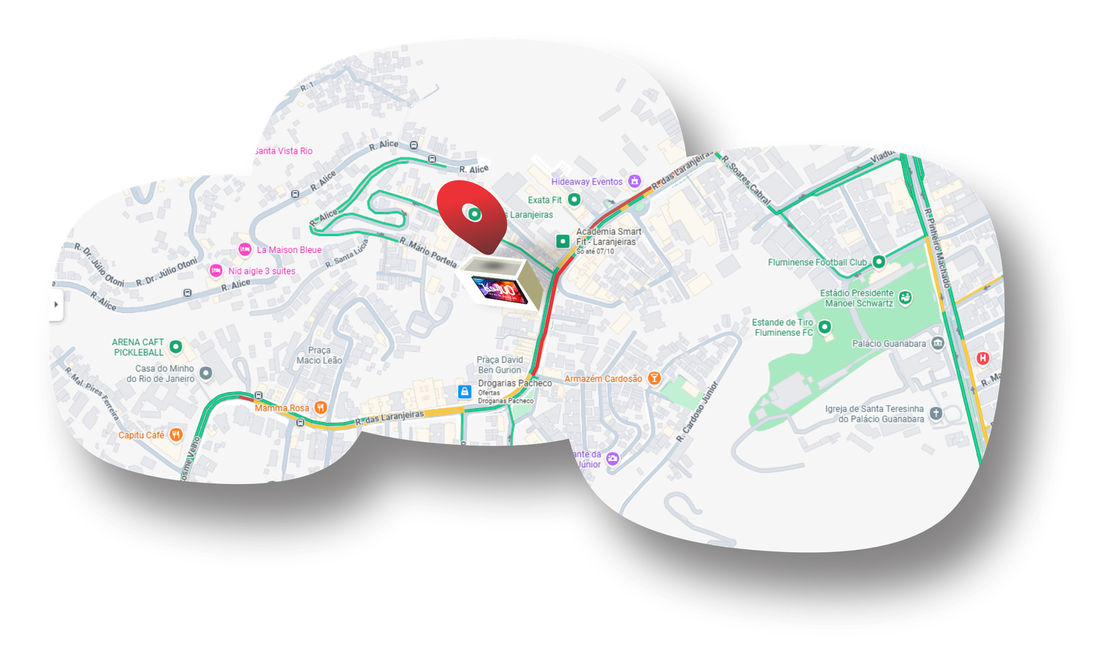 A via conecta a área ao Largo do Machado (próximo à estação de metrô) e ao Cosme Velho (acesso ao Cristo Redentor), garantindo um fluxo constante de pessoas, tanto moradores quanto turistas.